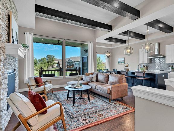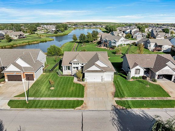 Welcome to 4402 N Cimarron, a 5-bedroom home (plus a bonus room!) in the lively Edgewater community. Step inside to a show-stopping living room with statement wood-beamed ceilings, a stacked-stone fireplace framed by custom built-ins, and a wall of windows overlooking the water. The open kitchen features a large island, walk-in pantry with appliance storage, and BONUS - all appliances remain with the property. The primary suite is a retreat - modern barn door, tiled shower with bench, water closet, double sinks, and a closet with direct access to the separated laundry room. The split floor plan adds two more bedrooms and a full bath on the main level. Downstairs, the finished basement offers a wet bar with backyard views, two additional bedrooms, a full bath, storage galore, and a BONUS room. Outside, enjoy the water views from the east-facing deck (yes, there’s even a slide!), fenced yard, and walking path that connects you to the clubhouse, pool, and playground. Edgewater is known for community events (Halloween is a FAVORITE!) and offers quick highway access, Maize school district, and Wichita city taxes. This home blends space, lifestyle, and community—don’t miss it. Looking for a lower interest rate? Paid off specials? Closing cost assistance? The sellers are offering a $10,000 credit towards whichever helps your situation the most!! Let’s make a deal!!