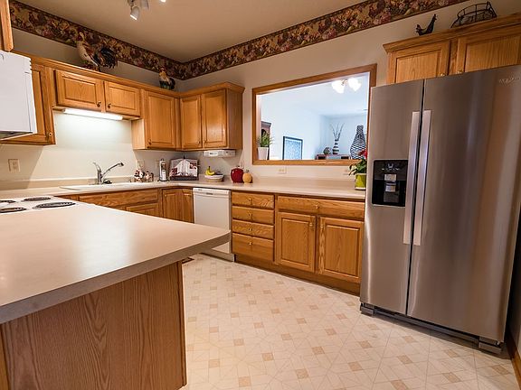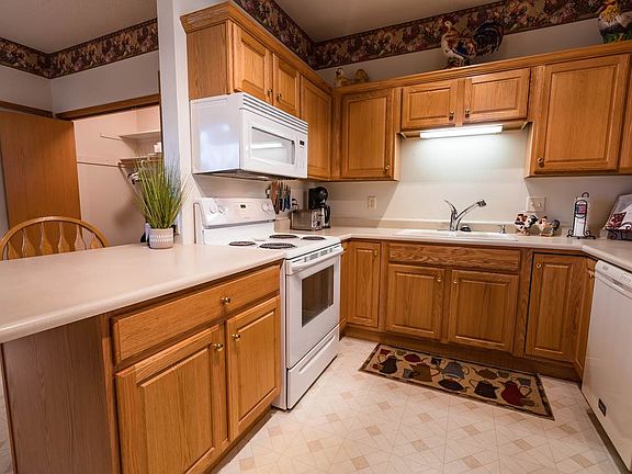 A better way of living! This zero-entry ranch style condo is easy to love with no lawn, snow or exterior maintenance to worry about. A rare find and designed to delight with an open floor plan featuring a spacious living room and dining room with lots of natural lighting and access to the private patio. The kitchen boasts beautiful cabinetry, ample counter space, an eat-in area and a laundry closet. You will love the large bedrooms including a master en-suite, guest bedroom and additional hallway bath. Other amenities include an attached one stall garage, newer A/C, patio window/door and roof. Situated on a beautifully manicured corner lot in the Guernsey Park subdivision close to hospital, restaurants, shopping and more, this 55+ neighborhood is a perfect place to call home. Call for a private showing today!