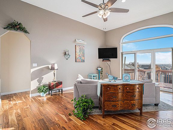 Enjoy breathtaking South and West mountain views from this quality home on a large lot with NO HOA and oversized 3-car garage! The main level boasts 12-foot high ceilings, gorgeous Acai wood floors, and south-facing windows with 3M film that lets in natural light while reducing heat. The eat-in kitchen is a chef's dream, featuring granite countertops, stainless steel appliances, slate floors, granite backsplash, and two pantries for plenty of storage. A cozy multi-sided fireplace connects the living area to the formal dining room, which features a two-toned cove ceiling and a convenient bar area - perfect for entertaining. The Owner's suite offers a private door to the deck, a spacious walk-in closet, a jetted tub, and custom pleated sheer blinds that let in light while providing privacy. The large, bright laundry room also has fantastic views, a utility tub, and slate trim. The basement features 10-foot ceilings, a bedroom with a huge walk-in closet, a huge family room with a gas fireplace, and a large heated storage area. Plenty of space for entertaining with room for a bar, pool table included! French doors and large windows lead to the walk-out basement patio. Step outside to the expansive main-level deck that leads to a 24' above-ground Copper Canyon pool with a surrounding deck and gazebo - perfect for relaxing or entertaining. No HOA, plenty of space for extra parking, and an oversized 3-car garage over 1,000 sq. ft. Recent updates include a new air conditioner and furnace humidifier and the pool liner is 3 years old. Ideal location near Highway 34 and Center Place Mall, enjoy convenient access to restaurants, banking, and major retailers - truly location, location, location! Ask about rates as low as 4.99%! Our preferred lender is offering a special temporary buydown program for qualified buyers - enjoy reduced rates for the first two years. Contact your agent today for full details and eligibility.