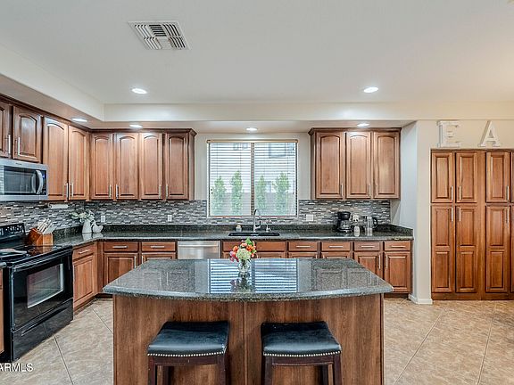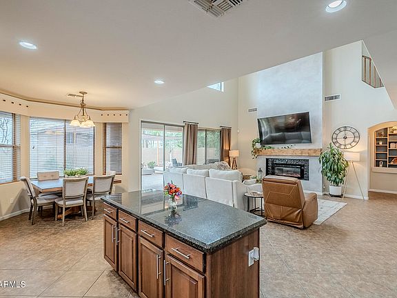 Welcome home to this beautifully updated two-story home in the desirable Anthem West community! This spacious 5-bedroom, 4-bath home sits on a premium ¼-acre+ lot with mountain views and plenty of room to play. Inside, you'll love the open floor plan, new luxury flooring, fresh paint, and a stunning floor-to-ceiling fireplace. The gourmet kitchen offers granite counters, cherry cabinetry, stainless steel appliances, designer backsplash. The primary suite downstairs features a spa-style bath, while upstairs includes a second ensuite, three large bedrooms, dual lofts, and a sunset-view balcony. Enjoy a $30K landscaped backyard, RV gate, solar power, epoxy 3-car garage, and newer systems. Close to Anthem's parks, trails, and top-rated schools—move right in!