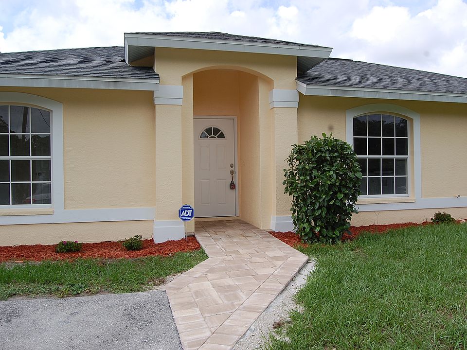 BACK TO MARKET! Previous buyer made financing error and sellers are more motivated than ever! Gorgeous, well maintained, pet-free home in Golden Gate Estates. Vaulted ceilings, abundant natural light, great room design, large closets and storage areas and a split floor plan make this house live much larger than 1100 square feet. One block to the 18th Ave shortcut to Everglades Blvd, this home has the privacy of country living, with convenient access to town. Just a few miles from Naples, Ave Maria, Arthrex, Seminole Hard Rock Casino and Immokalee - great for commuters. Sellers have recently painted and landscaped, so home is ready for it's new family. Kitchen has newer high end appliances, and a huge wall to wall pantry. Stackable washer-dryer included. Each bedroom has large closets and the master has a full walk-in. Paver patio and semi cleared lot for outdoor relaxation.