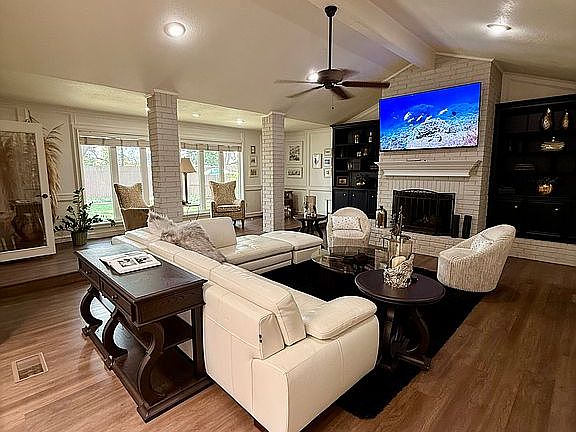So many things I love about it. A major point is the three bedrooms and 2 bathrooms allow for total privacy for everyone. Love the cozy den in front of the wood burning fireplace, where we would sit every evening enjoying TV or reading. And the backyard is a true oasis with all the amenities: pool, cook area, patio, and TV wall.