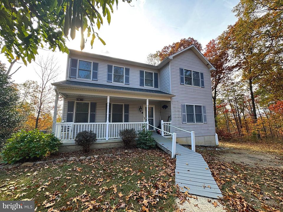 Peaceful Country Retreat on 2 Unrestricted Wooded Acres! This traditional-style colonial home offers 3 bedrooms and 2.5 baths, featuring an inviting eat-in kitchen and a separate dining room—perfect for gatherings. Spacious living room just off of kitchen and an office all on the main level. Enjoy the outdoors from the covered front porch or relax on the rear deck overlooking the wooded setting. The walk-out basement provides great storage or expansion potential. A private and serene property with plenty of space to explore and enjoy nature—no HOA or restrictions! All sizes are approximate. Photos coming soon