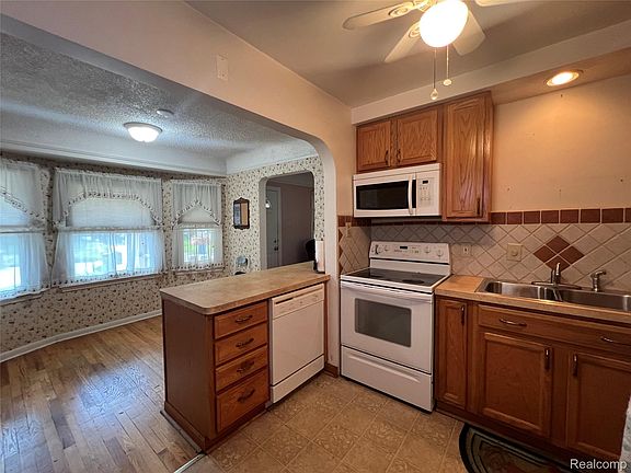 Lovely well cared for home is ready for new owners~You will love the covered front porch ~ Cute kitchen & dining room~PLEASE NOTE THE PRIMARY FIRST FLOOR BEDROOM HAS BEEN CONVERTED TO A LARGE ROOM WITH TWO CLOSETS BUT CAN BE CONVERTED BACK-HENCE 3 BEDROOMS~ Gorgeous knotty pine throughout~ Updated kitchen and all appliances stay~ Full kitchen in the basement as well! Nie sized privacy fenced yard with a HUGE 2.5 car garage and an added "leanto" for more storage or workshop area~ Great house will be sold" as is "~ Seller will obtain the C of O list next week~ ADATBV