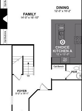 Open-concept layout featuring a spacious family room, dining area, and a modern kitchen with quartz countertops, upgraded cabinetry, and a large island