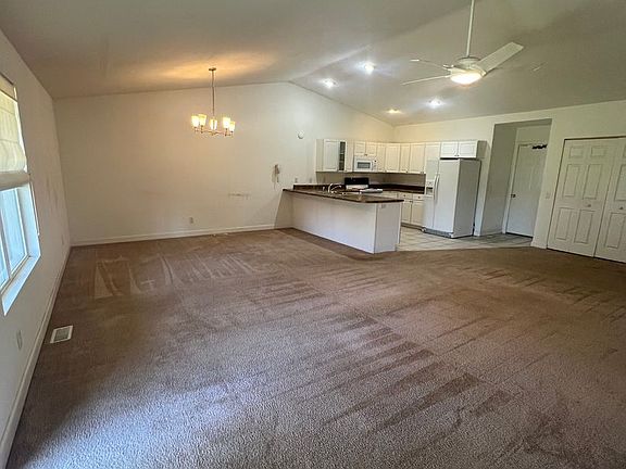 Enjoy three bedrooms and two full baths, to include a great master suite! Generous, vaulted living space with nonworking fireplace as the focal point and loads of natural light in an open concept among kitchen & dining room. Prime location minutes from everything!