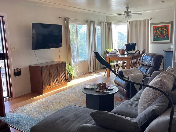 Home located in highly desirable neighborhood of Ocean Beach. Home sits on corner of Muir Avenue and Venice St. with a distant view of Sea World/Mission Bay and city lights. Single level, 3 bedrooms, 2 baths, hardwood and tile floors, inside laundry room, detached 2 car garage. In March 2022 home completed SD Quiet Home Program improvements including air conditioning. Home needs some TLC and ready for you to make it your own! Wonderful backyard for entertaiment and OB BBQ's!