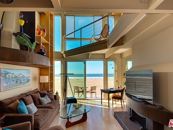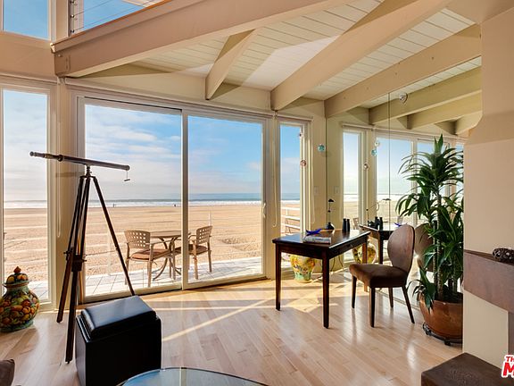 Enjoy watching the surf, sailboat activity, and amazing sunsets from this gorgeous ocean front penthouse with panoramic views on an idyllic white-sand beach. Enter this 2-story, second floor walk-up into an inviting open living space with vaulted ceilings and gas fireplace. Open kitchen includes custom cabinetry, granite counters, breakfast bar, pantry, and all new appliances. Also on the main floor is a spacious guest bedroom with built in desk and full bath. Upstairs is the open master bedroom loft with stunning ocean views, walk in closet, and add'l guest bedroom/office which leads out to a rooftop deck. Other features include a terrace, maple floors, recessed/track lighting, ceiling fans, storage, and private 2-car tandem garage. With an abundance of natural light and warmth, this serene on-the-beach abode is the perfect place to fully enjoy coastal living. Phenomenal location on the highly coveted Marina Peninsula, close to many restaurants, shopping, Abbot Kinney and more.