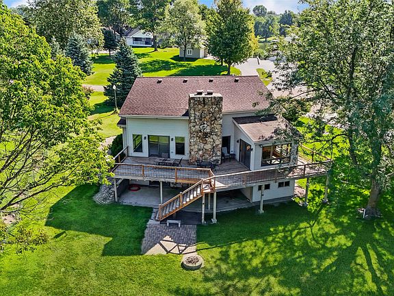 Charming waterfront retreat at Lake Panorama. Situated on a quiet cul-de-sac and on a highly desirable flat lot just off Burchfield Cove, this home offers a peaceful setting with convenient water access. Inside, you'll find vaulted wood ceilings, a cozy wood-burning fireplace, and expansive windows that provide views of your spacious deck, yard, and shoreline. With 3 bedrooms, 3 bathrooms, over 2,200 square feet of living space, and a finished walkout basement, this lake home is perfect for effortless entertaining and hosting. Located just 45 minutes from Des Moines, this retreat is ready for your finishing touches.