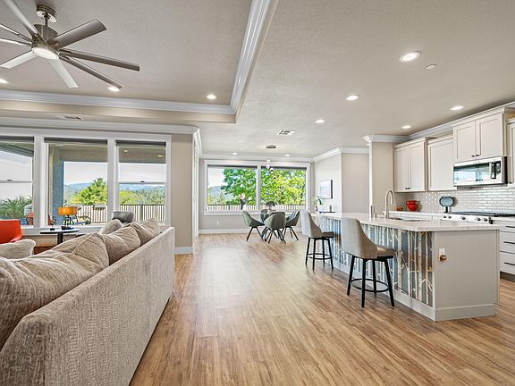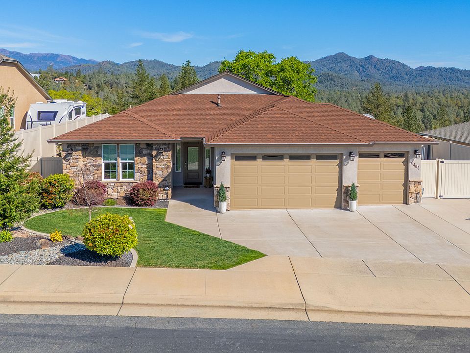 Experience modern luxury in this remarkable home nestled in a sought-after neighborhood. Uncover a sanctuary boasting 3 bdrms + a versatile 4th bdrm/office space, complete w/ dual closets. Offering a seamless blend of elegance and functionality, explore the expansive split floor plan featuring new appliances + exquisite quartz countertops. Take in stunning views while the striking primary en-suite offers a peaceful retreat. Convenience is key, w/ a 3-car garage, incl. space for your RV or boat. Find solace in the beautifully landscaped outdoor area, featuring breathtaking panoramic views, 2 covered patios + a swim spa. Reach downtown Redding in 10 min, solidifying this home as prime location living. Prepare to be enchanted by the warmth + sophistication awaiting you in this haven