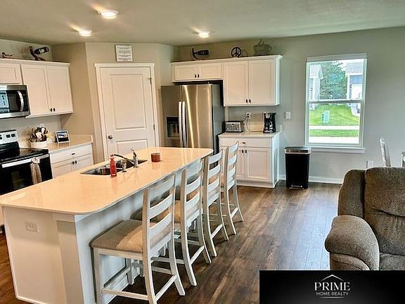 3 year old home, quiet corner lot with no thru traffic or backyard neighbors. Lawncare, fertilizing, sprinkler maintenance, snow removal and trash removal included! Beautiful Ranch on a corner lot in the Belle Lago Subdivision in Bellevue. This home offers 3 bedrooms and 2 baths in a single-level living space. The main living area offers solid surface flooring throughout for easy maintenance, as well as a spacious, open layout that provides the perfect entertainment space. Two large bedrooms are situated in the front of the home, with another bedroom, that features a wonderfully-sized walk-in closet and luxury bath, is situated in the back of the home for privacy. The gorgeous kitchen comes with a large built-in island, quartz countertops beautiful cabinetry, and a corner pantry for all of your storage. The massive 1,500 sf unfinished basement offers 9' ceilings and is a blank slate to add two more bedrooms, a bathroom, theatre or rec room.