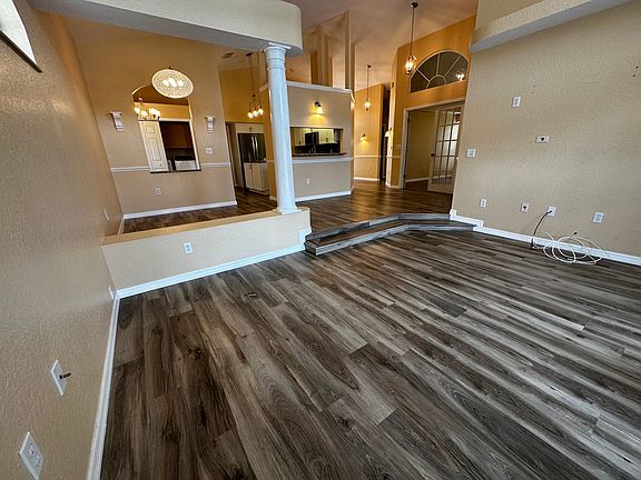 Den with fireplaceCovered lanaiUpgraded lakefront homeVaulted ceilingsScreened in florida roomDining areaTwo walk in showers