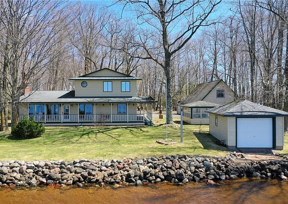 This Lake Namekagon northwoods cottage style lake retreat has so much...Big views, level lot with sandy lakeshore, large gazebo to enjoy the lake views from out of the elements, and a boat house at the shore. 4 Bedrooms, 2 baths and an open main floor living area allow for social gathering. The wrap around porch is a charming place to swing while gazing out at the lake. 3 car garage 2nd story is ready to be finished for additional room. Appt only, no drop by visits allowed.