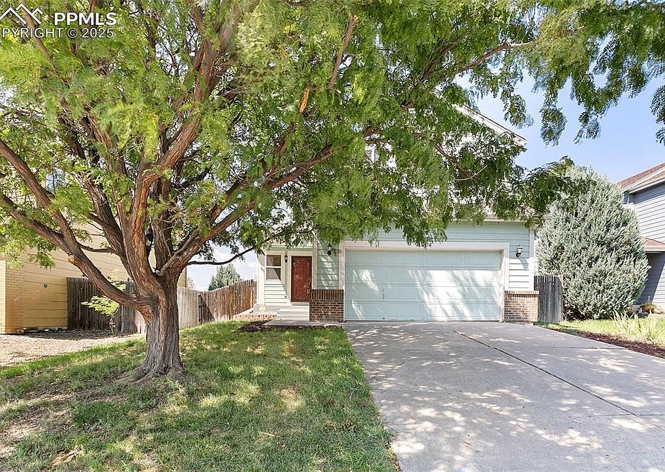 Magnificent Mountain Views of the Front Range for you to enjoy in your private backyard, with no neighbors behind. Move right in to this newly painted and newly carpeted 3-bed, 3-bath, 2-garage home! Enjoy an updated kitchen with new Corian countertops, new cabinets, a KitchenAid microwave, flat cooktop, and black stainless Samsung smart fridge. Main level features solid-surface flooring, LVP in kitchen/half bath, and a spacious walk-in pantry. Upstairs, you'll find a primary suite with a 5-piece bath & walk-in closet, along with two more bedrooms and a jack-and-jill bathroom. Other perks for you include a shed, a gas grill and patio set, LG clothes washer/dryer, flat TV mounts, and an unfinished basement for storage or future space needs. Conveniently located near Peterson Space Force Base, Schriever Space Force Base, and Fort Carson. The neighborhood has been recently updated with new sidewalks and paving throughout.