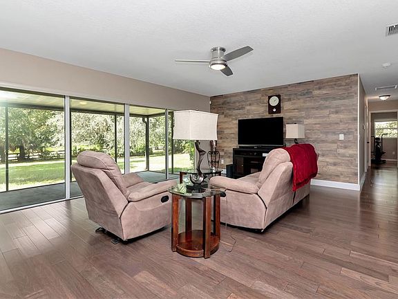 Timeless Character - Welcome to a home that checks every box—location, updates, space, and community. Tucked away on a private cul-de-sac in the coveted Hickory Creek neighborhood, this executive-style residence with charming curb appeal and stone-accented elevation sits on a rare .65-acre lot with an extended driveway, side-entry garage, and walkway to entrance. With 4 bedrooms, 2 bathrooms, and over 2,050 square feet of living space, it offers a perfect blend of comfort and function in one of Valrico’s most desirable settings. Step inside to a welcoming entry and flow into spacious formal and family living areas designed for both comfort and entertaining. The upgraded kitchen is a true showpiece with white soft-close cabinetry, granite countertops, tall uppers, backsplash, recessed lighting, and stainless-steel appliances. The expansive family room features luxury vinyl plank flooring, an accent wall, upgraded ceiling fan, and four sliding glass doors creating a seamless indoor-outdoor flow to the covered & screened lanai and backyard. The primary suite is a retreat with floor-length windows, a cedar-look walk-in closet, and a fully remodeled en-suite bath with tile-to-ceiling shower, quartz countertops, and upgraded lighting. Secondary bedrooms include LVP flooring, built-in closets, and modern updates. A remodeled full guest bath offers a wood-look vanity, quartz countertops, and tile-to-ceiling shower and tub combination. Thoughtful finishes such as 5 ¼-inch baseboards, plantation shutters, and updated fixtures compliment the home. The oversized laundry room has enough space to add a mud area, cabinets, and more - with Whirlpool washer and dryer, 2 storage closets, and garage & backyard access it provides everyday convenience. Outside, the large screened lanai, mature landscaping, and expansive lot create a private oasis. Recent big-ticket upgrades include a new roof (2019), HVAC (2018), water heater (2019), and electric panel (2019), giving buyers peace of mind. Hickory Creek is one of Valrico’s most sought-after neighborhoods, known for its executive-style homes on oversized lots, tree-lined streets, and exclusive setting of only 160 residences. With no CDD fees, convenient access to schools, shopping, dining, and major highways, and a reputation for timeless appeal, this community stands apart. This is more than a home—it’s the lifestyle buyers are searching for.
