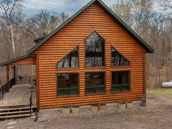 Classic Up North year round home with 1/2 log siding and fantastic views overlooking Round Lake. Features 1-1/2 story 3 bedroom 2 bath walkout with 2 car tuck-under garage and 200 ft. of water frontage on nicely wooded 5.72 acre setting. Beautiful natural wood interior, vaulted ceilings, stone gas fireplace, walk-in closet, spacious loft and a great mix of carpet and tile floors. Enjoy a panoramic view from the kitchen, the living room or up in the loft. Spacious 10x30 deck with 10x13 covered porch area. Relax in front of the stone fireplace on those cold evenings. Bring the boat or fish from the dock. Plenty of space for those late night campfires. Round Lake is a fantastic fishing lake without a public access. Feel like you have stepped into your own world with it's location off the beaten path. Enjoy the serenity of lake living where the only rush hour traffic involves the ducks, loons, deer and other wildlife.
