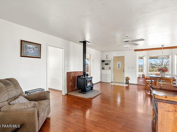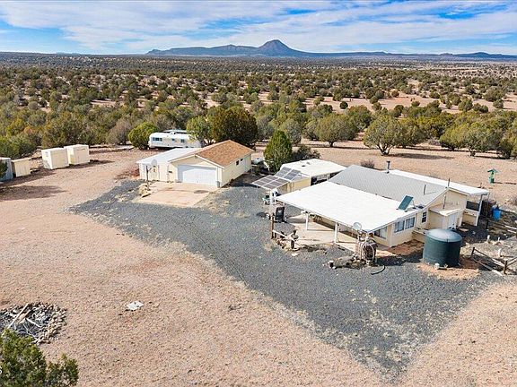 Charming off-grid cottage offering 2 bedrooms and 1 bath, powered by solar with propane and hauled water, plus rain catchment system. Set on a beautiful, private property with expansive views, mature trees, and varied terrain ideal for outdoor adventure. Features include a detached garage, large workshop, and multiple storage sheds. Vintage Silver Streak trailer on site, ready to be transformed into a unique guest suite. Peaceful setting with abundant privacy, yet conveniently located just 20 minutes from Ash Fork. Seller is offering a $15,000 concession for repairs/upgrades.