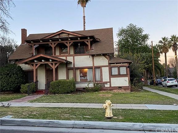 This charming 1912 craftsman is ready for a new family or investor. So much potential here! Possible mulit-family use. There is a side door that leads directly to stairs that lead to 3 bedrooms and a small room that at one time may have been a kitchen previously as there is a gas line. The 4 car garage at back of lot leads to the alley. Also potential there to turn into an ADU. Visit Riverside Planning Dept. for more details regarding ADU's and historical homes. This home is in the Evergreen Quarter Historic District right below Mt. Rubidoux and very close to Riverside Community Hospital, Riverside Community College and the downtown area featuring the Convention Center, the Fox Theatre, The Mission Inn, other luxury hotels, fine dining and entertainment galore. Close to 91 and 60 frewways and less than a 45 minute commute to LA and Orange Counties. Driveway on left does not belong to this property. Hurry this won't last.