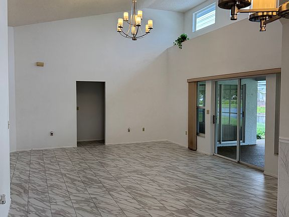 This is a spacious, light filled 3 bedroom 2 bathroom house (1600 sf), 2 car garage , walk in closet, and washer dryer laundry space inside right of the kitchen. High ceilings make living areas impressive. Sliding doors to lanai from kitchen, living room and master bedroom.