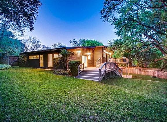 Mid-century, soft contemporary totally remodeled with exquisite wood flooring, luxurious carpet in bedrooms, both baths gutted and fabulously resurfaced, new windows in bedrooms, french door added, beveled subway set back splash in chef's kitchen surrounded by large windows/natural lighting with large center island w/sink, deck extended, patio added off 4th BDRM/study, new landscaping, new recessed lighting throughout, parking pad extended, base boards and crown molding, luxury appointments throughout.