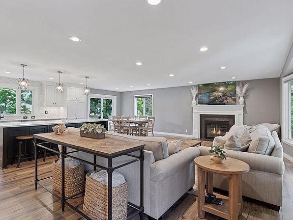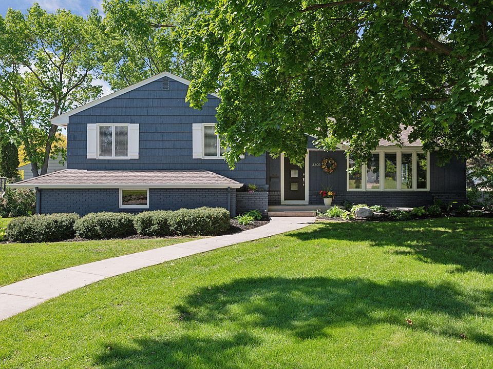 This beautifully updated Edina home offers the perfect blend of modern finishes and timeless charm—all just minutes from everything you need. Step into the fully renovated kitchen, featuring custom shaker inset cabinets, a striking tile backsplash that extends from counter to ceiling, and a massive 8' x 4' center island topped with luxurious quartz—ideal for entertaining or casual family meals. The open-concept layout is filled with natural light from expansive windows, creating a bright and inviting atmosphere throughout. Step outside to your private backyard oasis, where you'll find a custom two-level bluestone patio, surrounded by lush, professional landscaping. Cozy up around the natural gas fire pit on cool evenings, and relax in the backyard. The fully finished basement offers additional living space with a stylish shiplap accent wall and a built-in wet bar, perfect for relaxing or working from home in your spacious office. Additional highlights include an updated lawn sprinkler system, outdoor storage building, master suite with ¾ bath and numerous thoughtful upgrades throughout.