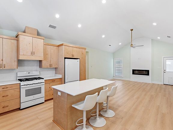 Modern electric fireplacePrivate culdesacClean white kitchen appliancesTankless gas water heaterQuartz countersOversized screened back porchCustom cabinets