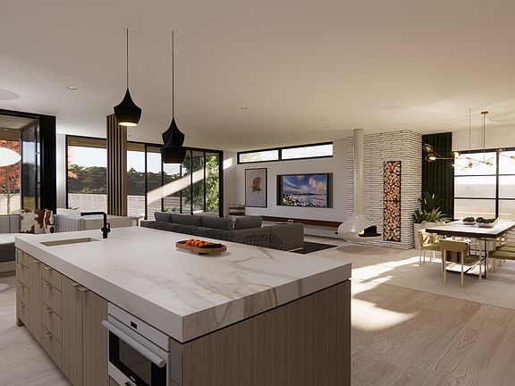 Warm contemporary aestheticClean architectural linesFloor to ceiling windowsSpacious great roomOpen conceptProfessional grade appliancesGourmet kitchen