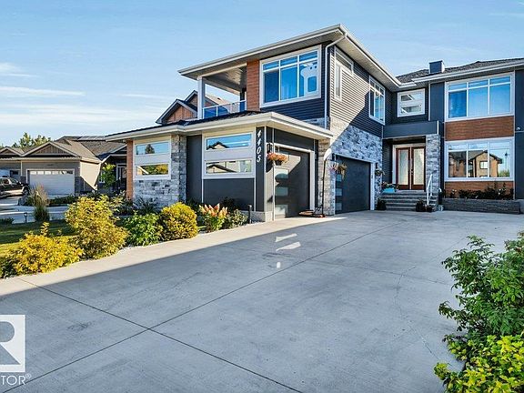 Welcome to Triomphe Estates! Located in a quiet CUL-DE-SAC, this magnificent home offers over 3,222 sqft+ of finished living space, 5 bedrooms, 4 full baths, SPICE KITCHEN & WALKOUT BASEMENT! The main floor features 18-ft ceilings, expansive panel windows & feature wall fireplace! The dining area overlooking a fully fenced backyard gives direct access to the MAIN FLR BALCONY. The Chef-inspired gourmet kitchen features a U-SHAPED ISLAND, QUARTZ COUNTERTOPS & a double-wide refrigerator! A SPICE KITCHEN is complete w/ a 2nd set of appliances! A 5th bedroom & full bath complete the main flr! The glass & solid wood winder staircase leads you to the upper floor w/ 4 bedrms, incl a primary bedrm w/ 5 -pc ensuite, walk-in closet & UPPER BALCONY access! A BONUS ROOM, laundry rm, 2nd bedrm w/ 3 pc ensuite & access to a 2nd UPPER FLR BALCONY, 2 add. bedrms & common 3-pc bath complete this floor. The walkout basement gives endless possibilities to create you extra living space! WALKING DISTANCE TO A MAN-MADE LAKE!