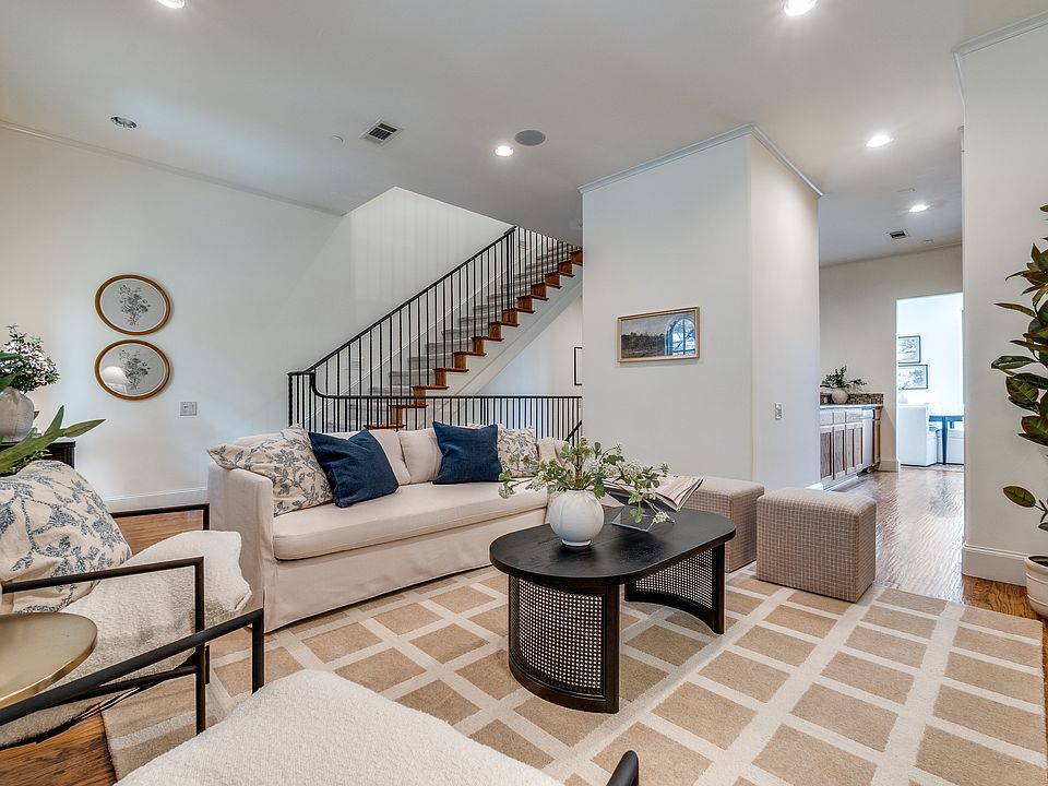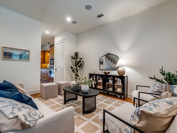 Beautiful Mediterranean three story townhouse just off Lemmon Ave. One bedroom on the first floor, living and kitchen on the second floor and spacious master and third bedroom on third floor. Private gated front courtyard and balcony on the third floor. Hand scraped hardwood floors throughout, SS Viking appliances, tall ceilings, tons of natural light, two car garage, AND comes with washer and dryer. Interior unit with multiple unreserved spaces in front. Eco-friendly with EV car hookup and Nest thermostats. Landlord pays HOA, tenant(s) pay electric and cable.