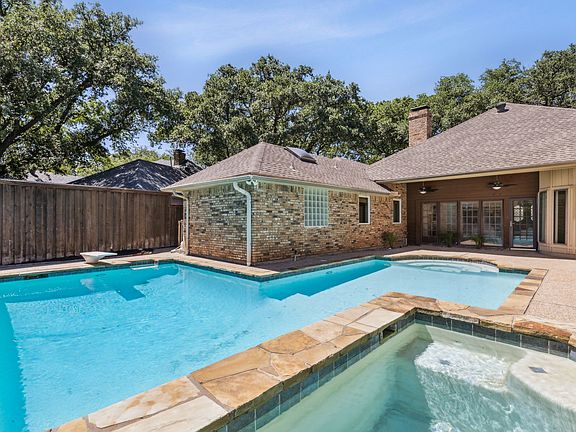 PRICE IMPROVEMENT on this Luxury Custom 1.5 Story Home with Exceptional Character. NEW Interior Paint and Carpet in 2025. Step into a light-filled entry with elegant craftsman parquet floors, which continue into the formal dining room featuring a classic tray ceiling. The spacious living area boasts new Berber carpet, a cozy brick fireplace, and custom built-ins that add warmth and character. The unique rotunda breakfast nook is a true standout, with built-in cabinetry and large windows offering peaceful views of the sparkling pool and spa—perfect for enjoying your morning coffee. The updated kitchen is a chef’s dream, complete with granite countertops, updated cabinets, a skylight, double ovens, and stainless steel appliances. The private primary suite is a serene retreat, offering a generous ensuite with double vanity sinks, a separate custom stone tiled shower, and a garden-style jetted tub for the ultimate in spa relaxation. With five bedrooms, this home provides plenty of flexibility—use the fifth bedroom as a study, home office, or mother-in-law suite. In additional there is a Game room upstairs with half bath--perfect for a pool table, play area, home business, or movie nights. Step outside to your covered patio overlooking the sparkling diving pool and spa—a private backyard oasis, complete with an herb garden and high-quality privacy fence. (Note: Pool and spa are not heated.) Enjoy all that Bent Tree West has to offer, including the nearby Swim & Tennis Center with social events, tennis and pickleball courts, a park, clubhouse, and a great sense of community. This is a rare opportunity to own a home with incredible value in one of North Dallas' most desirable neighborhoods. Come see it today and imagine the possibilities!