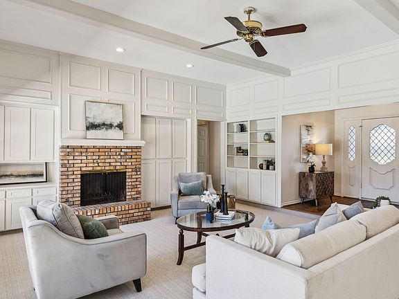 Cozy brick fireplaceHerb gardenFormal dining roomStainless steel appliancesCustom built-insFive bedroomsGranite countertops