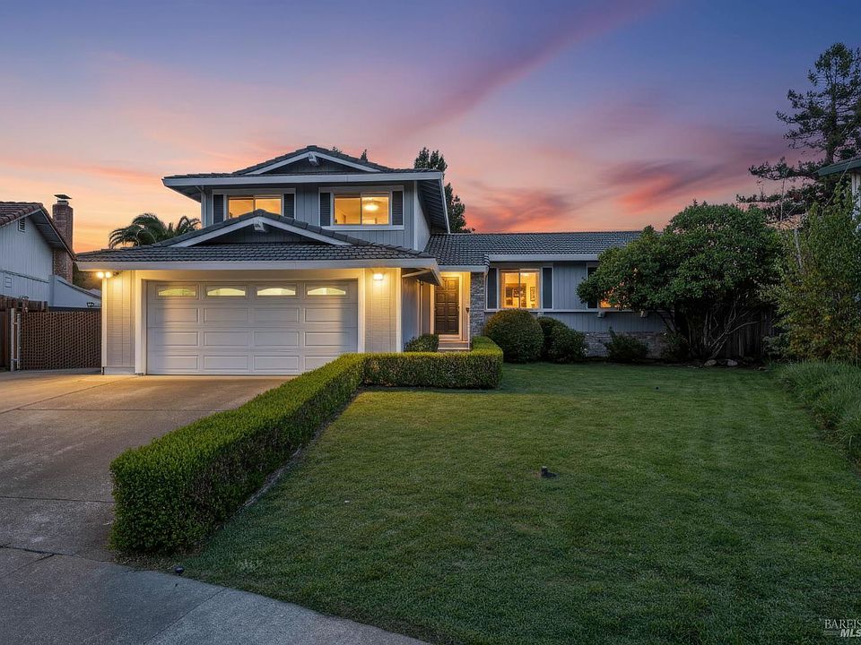 Welcome Home! This spacious 2,200 sq. ft. home features 4 bedrooms and 3 bathrooms, perfectly situated on nearly 1/3 of an acre the ideal place for your family to create lasting memories. Downstairs, you'll find a private bedroom suite with its own exterior entrance, attached bathroom, and kitchenette perfect for extended family, guests, or rental income. The main level offers a comfortable layout with a generous family room, living room, kitchen, and dining area. Upstairs includes three well-sized bedrooms, including a spacious primary suite with a beautifully upgraded bathroom. The additional two bedrooms share an updated bathroom and provide ample closet space. Recent upgrades include: Brand new carpet and fresh interior paint New doors, hardware, and lighting throughout Stylish quartz countertops and newer appliances Newer furnace, water heater, and an electric fireplace in the great room The exterior has also been recently refreshed with new paint, and the tile roof has been resurfaced. Outside, you'll find gated RV/boat parking and a driveway with space for up to three vehicles. The backyard is a true highlight featuring mature palm trees, a covered deck with canopy, a lush lawn, and a spacious play area for kids. Don't miss this exceptional home.