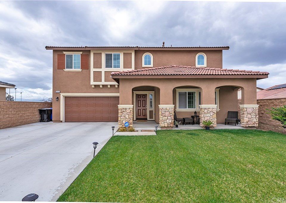 NO HOA! SOLAR LEASE SAVES ON ELECTRIC BILL! BETTER THAN NEW! BUILT IN 2018! YOU MUST SEE THIS LARGE HOME ON A LARGE LOT! 12,632 sqft home site with a super long driveway and a fully landscaped large backyard including a concrete patio with aluminum cover and a gazebo! There is no back yard neighbor. The backyard views a park!, 2867 square foot with 5 bedrooms, 3.5 baths,a downstairs bedroom with it's own bath, an upstairs loft/game room and a 2 car garage. This home has many upgrades including, designer cabinets, stainless steel appliances, custom laminate flooring, custom paint and crown molding. There is a nice pantry and an upstairs laundry room!