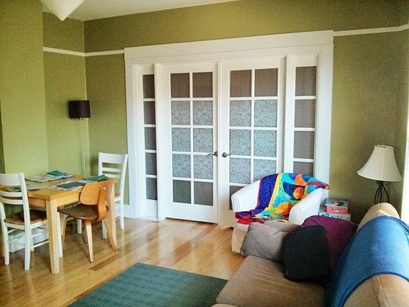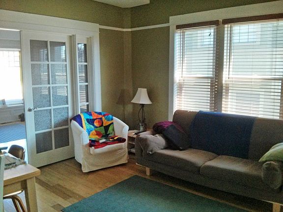 Light filled 2nd story duplex apartment in Wallingford ; one block from shopping, restaurants, park and bus line; walking distance to Green Lake and playing fields. 1904 four square architecture features updated plumbing and electrical; large private deck; patio with fountain in front; 2nd patio in back with gardening space. First and last months' rent. Tenant pays $75/ adult/month water/sewer/garbage fee, no off street parking.