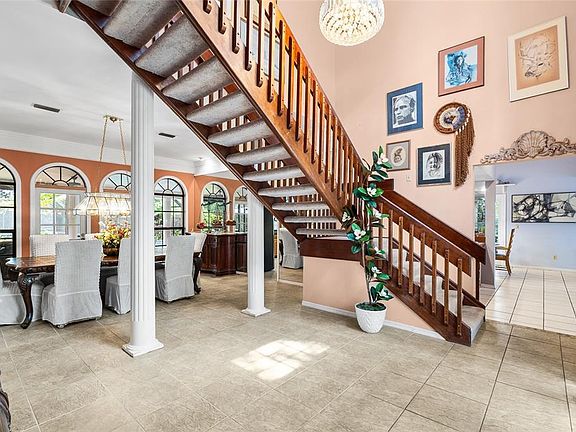 Nestled on a quiet cul-de-sac in the highly sought-after Carrollwood Village Phase I, this 4 bedroom, 3 bath, 2 car garage estate style residence offers 3,698 sq. ft. of living space on a beautifully landscaped .34-acre lot. Rarely available in this coveted neighborhood, the home presents an incredible opportunity to remodel, personalize, or invest. Enter through double doors into a soaring foyer highlighted by a grand staircase. Behind it, the formal dining room sets the stage for gatherings. To the left, a private wing hosts a full bath, king-sized bedroom, and an oversized great room with vaulted ceilings, plantation shutters, and a cozy gas fireplace. To the right, the family room with wet bar flows into an eat-in area and a spacious kitchen with abundant cabinetry and a brick arch over the range. A second fireplace adds warmth and character. Upstairs, two guest bedrooms share a full bath, while the primary suite offers six oversized windows, French doors to a private balcony, multiple closets including two walk-ins and a spa inspired bath with dual vanities, a garden tub, and walk-in shower. Step outside to the enclosed lanai with summer kitchen, oversized heated pool, and multiple seating areas—ideal for entertaining. Mature landscaping, brick patios, and estate-style pavers complete the outdoor retreat. Highlights: 2 HVAC systems (2016 & 2024), LED lighting, passed 4-Point inspection, oversized 2-car garage. This custom-built estate home blends curb appeal, space, and potential in one of Tampa’s most desirable communities. Nestled in the heart of Carrollwood Village, this home offers unmatched convenience with quick access to Dale Mabry Highway and the Veterans Expressway, making commutes to Downtown Tampa, Westshore Business District, and Tampa International Airport a breeze. Everyday essentials, shopping, and dining are just minutes away at Carrollwood Village Center and Carrollwood Commons, while nearby Carrollwood Country Club, parks, playgrounds, and walking trails provide endless recreational opportunities. Families will appreciate being within close proximity to top-rated schools, including Carrollwood Elementary, and just a short drive to cultural attractions, local cafes, and entertainment venues. All of this while enjoying the peaceful, established charm of one of Tampa’s most sought-after communities. Don’t miss the opportunity to make this beautiful Carrollwood Village home yours — where convenience, community, and lifestyle come together in perfect harmony.