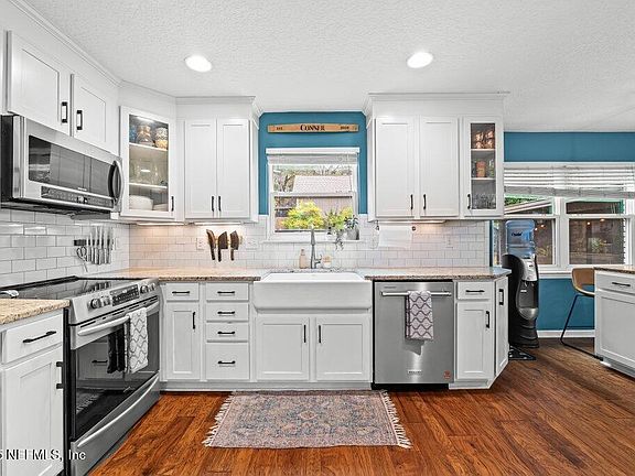 Charming renovated colonial-style home in the desirable Fort Caroline neighborhood of Jacksonville! This 4-bedroom, 3-bath home features a stunning farmhouse style with modern finishes throughout. The main floor boasts beautiful wood floors, a spacious modern kitchen with a large island and farmhouse sink, plus a cozy living area. Additionally, the first floor offers a dedicated office space, perfect for remote work or study, as well as a versatile flex space that can be used as a playroom, gym, or dining room. There is also a spacious bedroom on the main floor, perfect for an in-law. Upstairs, you'll find 3 comfortable bedrooms with plush carpeting. The large backyard is perfect for entertaining, and the screened-in porch offers a peaceful spot to relax. With a great location in a cozy, family-friendly neighborhood, this home is the perfect blend of style and convenience! Roof, Electrical, HVAC, plumbing and water heater all replaced in 2013, all other appliances 2 years old or less!