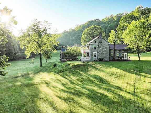 Welcome to The Rock House, an extraordinary 1850's mountain retreat masterfully restored to honor its historic roots while embracing modern-day comforts. Situated in the secluded enclave of Rich Patch yet conveniently close to Interstate 64, this remarkable property combines timeless craftsmanship with contemporary amenities, making it ideal as a primary residence, vacation home, or an exceptional Airbnb opportunity.Constructed with stunning 20-inch-thick rock walls, The Rock House features three bedrooms, a modern kitchen, and updated bathrooms, all complemented by fiber optic internet availability. Blue Spring Run, a picturesque blueline stream, meanders through the property, enhancing the serene landscape adorned with mature hardwoods. Whitetail deer and wild turkeys are frequent visitors, embodying the rich natural surroundings.Enjoy breathtaking mountain views from the expansive front porch and the charming balcony above, where morning sunrises and evening twilight offer captivating backdrops. With acreage to expand, this property holds immense Airbnb potential, including options to develop additional accommodations. Embrace the rare beauty, privacy, and unique investment opportunity The Rock House provides in the heart of Alleghany County.