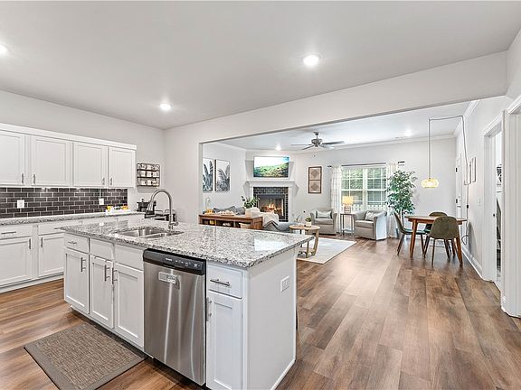Welcome Home! This move-in ready 4-bedroom home with a dedicated office or dining room offers the perfect blend of privacy, space, and style. Built in 2022, this well-maintained home features more than 2,000 square feet of thoughtfully designed living space on a level lot and backs up to serene woods. Are you tired of looking at homes in the middle or a construction zone? With no room to build behind this home, you will always get to enjoy the peace, quiet, and natural views right from your backyard. The heart of the home is a spacious open-concept living area with a gas fireplace, perfect for cozy nights in. The main-floor primary suite provides convenience and comfort, while three additional bedrooms and a versatile office space offer plenty of room for family, guests, or working from home. All kitchen appliances and washer and dryer stay. Bentonville School District