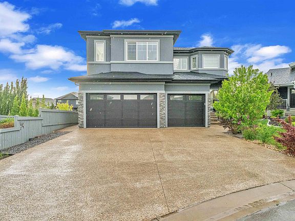 WALKOUT home with Massive Lots || Triple Car Garage || 5-bedroom, 5-bathroom in Beaumont's prestigious Triomphe Estates backing to trail. Spanning over 3,680 sqft, this home has state-of-the-art boiler system providing in-floor heating across the main and basement levels, each with individual thermostats. The whole-house hot water recirculation ensures instant hot water at all fixtures, complemented by a water softener system. The HVAC system features zoned climate control with separate dampers for personalized comfort. The heated triple garage includes RV access and a through door to the backyard, while the heated garage also houses a washer and sink with hot and cold taps. Main floor living, dining, kitchen, spice kitchen, family area, full br & full bath. Upstairs, spacious bonus room & 4 master bedrooms with their own ensuite & a spacious laundry room. Situated on a pie-shaped lot in a quiet cul-de-sac, this home combines elegance with modern convenience.