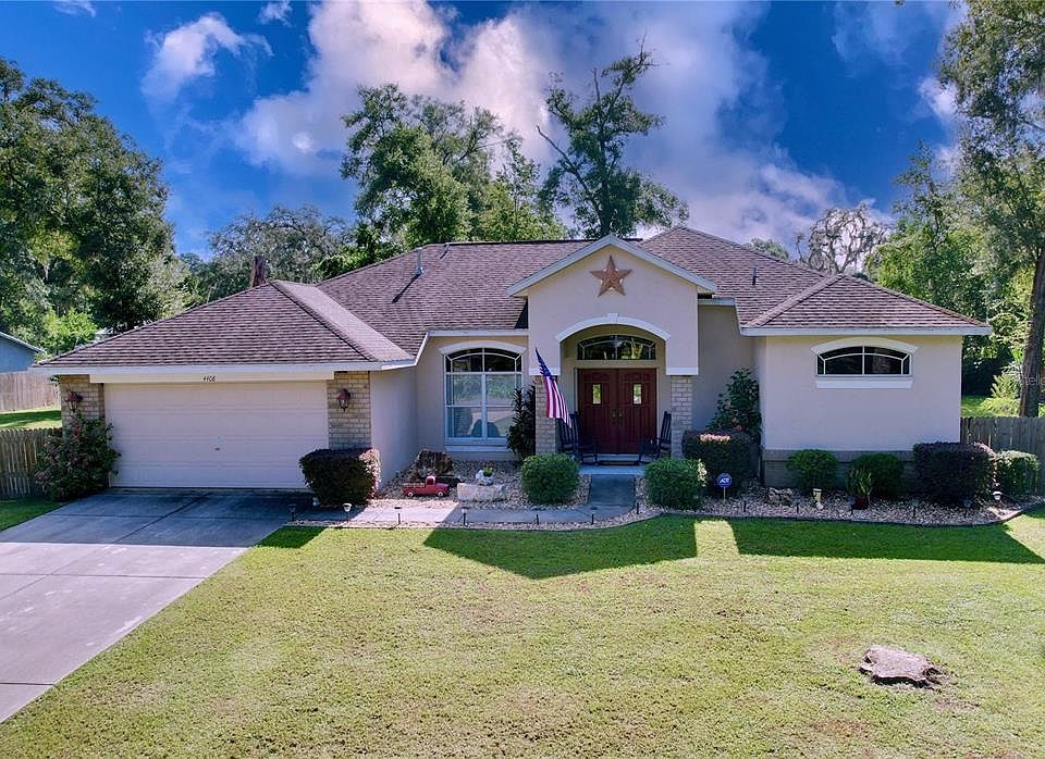 Blend indoor and outdoor living. This home has 2245 sq. ft. of living space that offers a generous sized primary suite and luxurious ensuite bath. 4 total bedrooms and 3 bathrooms. Open site lines when you enter with lots of natural lighting. Spacious living and formal dining area. Centrally located kitchen with breakfast bar overlooking large family room with fireplace and breakfast nook. Sliding doors that bring in the natural light offers a great view of a tranquil inground screened, heated pool and spa. Spacious cover lanai area that is perfect for entertaining. This home also features arched doorways and 10 ft. ceilings. All Appliances are all included, including a additional fridge in garage, washer and gas dryer. Hot water heater, fireplace, spa, and built in grill on lanai are also gas. This home rests on a 1/2 acre landscaped lot with privacy fenced rear yard with workshop and carport/storage areas. No HOA fees here so bring the RV, boat, etc. Come see for yourself why this home could be your perfect new home.