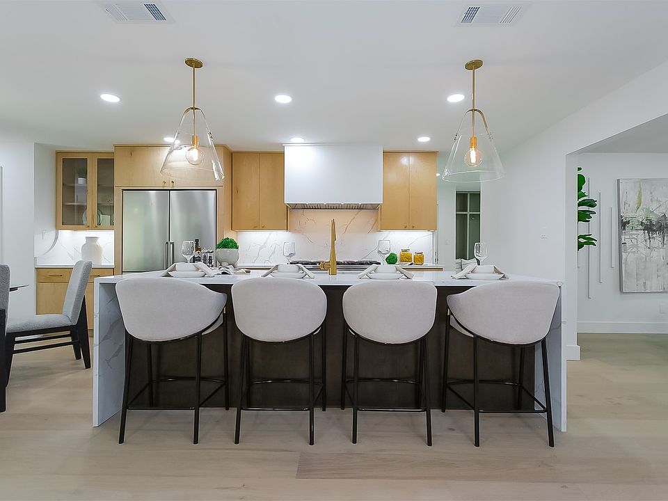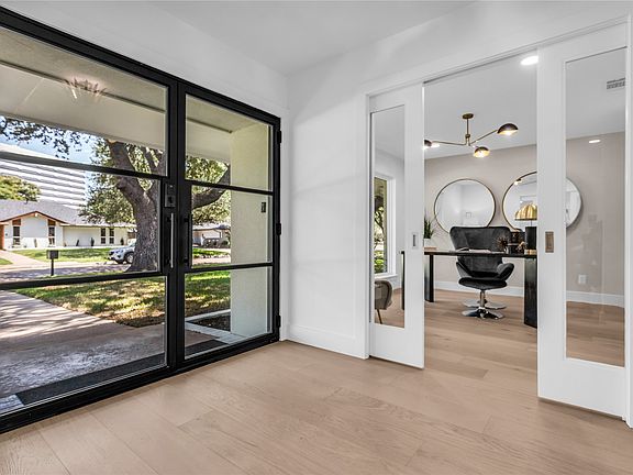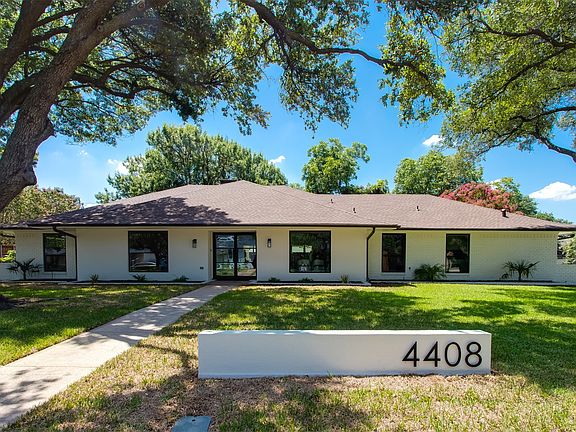Experience modern luxury in Dallas’ coveted Private School Corridor just minutes away from upscale shopping, fine dining, golf and major highways. 4408 Thunder Rd perfectly sits on a 0.35-acre pool-sized corner lot surrounded by mature trees. Beautifully renovated and thoughtfully remodeled with designer features that Wow, the home’s modern design and upgrades provide luxury, comfort and high-end functionality. This STUNNING- Like New, Move-In Ready remodel exudes an open-floor plan with spaces that compliment daily living and entertainment as well as an office for busy professionals. Natural light emits through the double iron doors-keyless entry, while white oak floors and designer tiles seamlessly align. A sleek matte fireplace and dry bar with wine frig complete the modern family room. Custom millwork, marble, and quartz compliment Mitzi- Visual Comfort- Lark and Arteriors designer lighting that flow throughout. The chef's kitchen comes complete with custom cabinetry, under-cabinet lighting, an 8 burner- duel fuel gas range, side-by-side frig, dishwasher, coffee bar, quartz backsplash, and waterfall island. The home's working walk-in pantry equipped with an ice maker, microwave drawer, trash bin and sink are ideal for meal prep or hosting. Three spacious-ensuite baths, an additional secondary bath and separate in-law suite provide both convenience and functionality. The spacious owner-suite offers direct access to the covered patio and encompasses its own coffee-tea bar with pot filler, sitting area, and custom closet. Double doors open to the spa-like bath embodied by large format floor-to-ceiling tiles, dual sinks, smart bidet toilet, freestanding tub, triple mode shower system, and a generous secondary walk-in closet with a full length dressing mirror. Got furry friends, the mudroom-drop zone houses a dog wash, eat and sleep area. The home’s stucco and brick exterior boast a timeless curb appeal while the elongated drive allows ample parking. Welcome home!