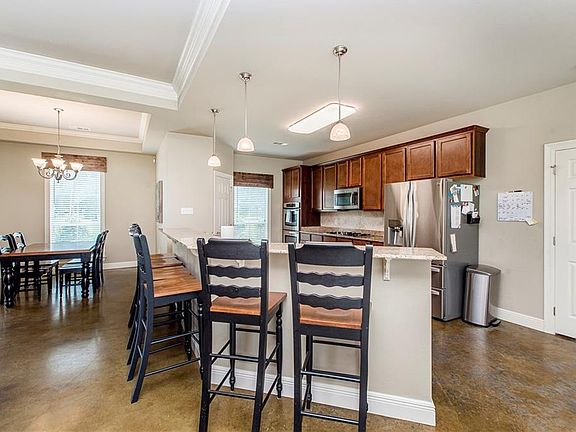 Welcome to your spacious retreat nestled on 1.5 acres of prime land. This stunning home boasts 5 bedrooms and 3 bathrooms, accommodating your family and guests. Step inside to discover the elegance of stained concrete flooring throughout, complemented by a generously sized kitchen and living area featuring a cozy fireplace—a perfect gathering spot for memorable evenings. The kitchen is a masterpiece with granite counters, a breakfast bar, and all SS appliances including a double oven. Unwind in the grand primary bedroom featuring a tray ceiling and a luxurious en suite bathroom complete with a soaking tub, stand-up shower, and double vanity—a true oasis of relaxation. Need a space to work from home? Enjoy the convenience of a dedicated office area, ensuring productivity without sacrificing comfort. Outside, revel in the expansive, oversized yard, for all your outdoor activities and hosting gatherings with friends and family. Complete with a garage, this property combines practicality with luxury. Don't miss out on the opportunity to call this exquisite property your new home. Schedule your showing today and experience the epitome of comfort and style.