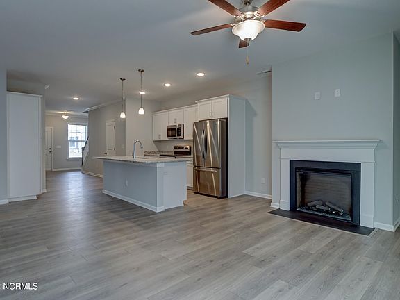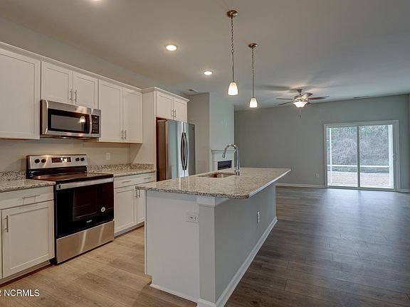 Electric fireplaceBrushed-nickel fixturesGranite countertopsScreened in porchStainless-steel appliance package