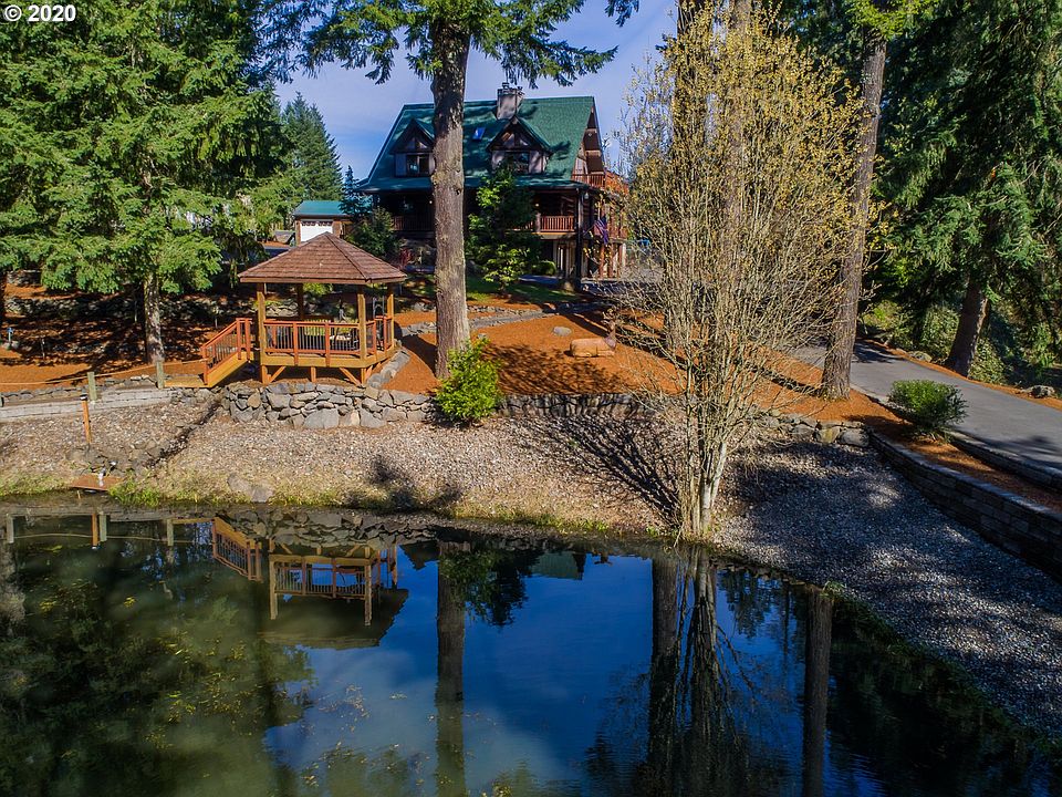 ONE OF A KIND! 5 pristine acres w/docks/gazebo surrounding pond! All paved winding peaceful driveway to gated entry & stunning log home w/wrap around porch! 3 Levels, multiple outdoor living spaces, sand volleyball court, swimming pool, pizza oven, projection tv, HUGE AG building for boats/toys + 3 car garage! Landscaped to perfection, Master suite w/walk in closet + ovrsized bath w/jet tub, guest bath fully updgraded tiled shower! Island kitchen, formal DR, 2BR up & up to 3 rooms down+Bonus rm