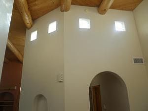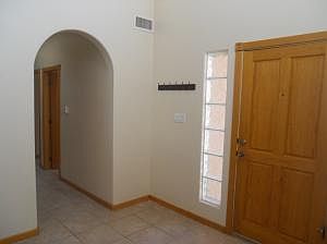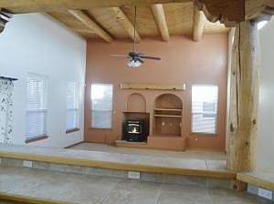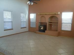 Don't miss your chance to be the proud owner of this striking custom home!Expansive greatroom with vigas, pellet stove and tongue and groove ceilings! Light and bright floor plan. Open kitchen with informal dining area and breakfast bar! Master suite with lavish master bath that boasts dual vanities, jetted tub, separate shower and "his and hers" walk-in closets! Warm wood tones, archways and glass block accents! Generous secondary bedrooms with full bath. Separate service room. Custom tile throughout! Large covered patio for barbequing and entertaining!Impressive water feature! Synthetic Turf! Easy care landscaping. Walk to park!