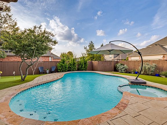 Welcome to 4409 Oak Knoll Drive, a traditional two-story haven nestled in the heart of a vibrant community, renowned for its strong Plano ISD schools and ease of access for work commutes, shopping, and dining experiences. As you step through the front door, the warmth of the home envelops you like a soft, familiar embrace. The foyer leads you into a living room with a picturesque view of the sparkling pool. The adjacent dining area, one of two, offers an intimate space for savory meals and engaging conversations. The heart of this home is the family room with a cozy fireplace that sets the stage for memorable evenings, while the amazing chef's kitchen unfolds seamlessly from this space. Here, culinary dreams come to life on the gas cooktop, set against a backdrop of white quartz counters, white cabinets, gold accents and an absolutely stunning waterfall island that anchors the room with its elegant presence. Each of the four bedrooms promises a serene retreat, with the primary suite, 1st flr., boasting its own private sanctuary with a relaxing ensuite bath with deep soaking tub and separate shower. On the 2nd floor, you'll find a playroom, 3 spacious bedrooms and 2 full baths - a wonderful space for family and friends. Step outside to a tranquil outdoor living area with space for resting and dining, a large pool (with safety fence) and a turfed backyard with a putting green as a delightful addition. In addition, this home has a large 3 car garage - completing the space! This home is more than just a place to live; it's a canvas for creating lifelong memories. Whether it's the laughter of friends gathered around the island, the sizzle of steaks on the grill, or the splash of poolside fun, 4409 Oak Knoll Drive is ready to be the backdrop to your life's most cherished moments. Come, envision your new beginning - where every detail has been curated for your utmost enjoyment. (See Floorplans for room dimensions and Transaction Desk for a List of Recent Updates)