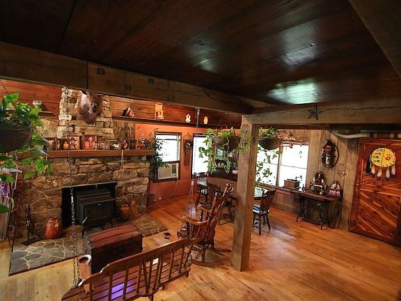RUSTIC CUSTOM COUNTRY HOME Get back to the basics here enjoy hunting or just seeing deer from the front porch rocker. Enjoy the red cedar siding 3-bedroom, (1-has additional private entrance for in-law quarters) 3 full bath, hardwood & tile floors through out home. Featuring an open floor plan, with post & beam with hight ceilings in the main living & kitchen area with a massive rock fireplace with pellet stove insert. Green house is attached. The home has been chemical free for 22 years. The avid gardner can enjoy the organic garden area with 7 foot fence. The 32x48 chicken house/ shop/barn/wood shed accents the home. All on a well landscaped yard with big oaks for shade around the home area all on 10 acres for privacy. Call for an appointment to see at just $225,00
