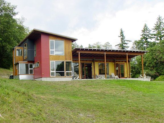 Stunning Dave Brown designed contemporary home sits on almost 7 acres of beautiful, south-sloping meadows with lovely views of Puget Sound. French doors off the open-concept living/dining/kitchen lead to the generous covered patio. Gourmet kitchen with concrete counters, stainless cabinets and a walk-in pantry. The gracious floor plan includes a den/office, laundry room and master suite on the main floor with 2 bedrooms upstairs + loft area. All this plus a large barn/shop!