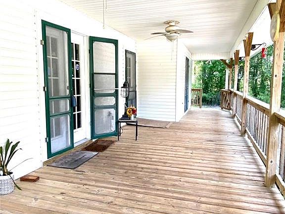 ROCK, SWING AND LIVE ON THIS WRAP-AROUND PORCH!! Custom built 3 bed / 2 bath sits on almost an acre on a quiet, dead end road with beautiful views of nature and trees all around. French doors open into the living area which has flooring of vintage wood salvaged from a nostalgic skating rink. Home also has a working attic fan. No carpet throughout the rest of the home! Kitchen has stainless appliances including gas stove and HUGE pantry for those that love to cook. Metal roof, 2 car detached garage with long driveway plus smaller shed.