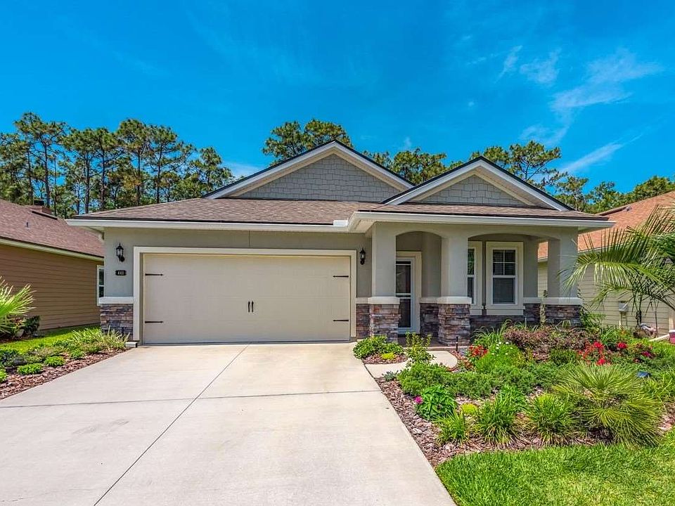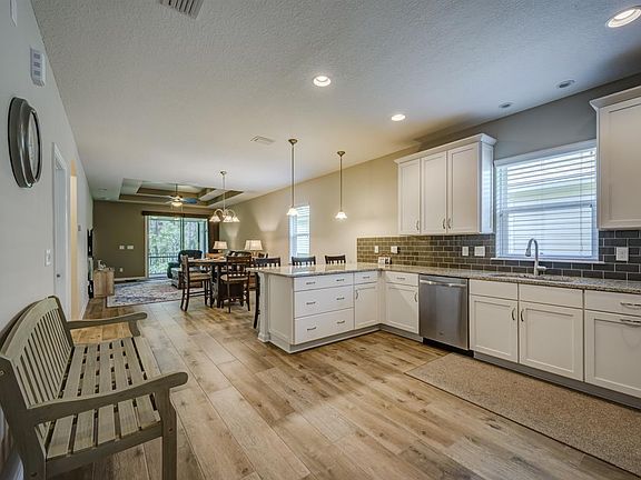 Enjoy privacy and tranquility from this like new constructed home by Mastercraft Homes in Villages of Valencia. This exceptional one story home offers three bedrooms, two baths, and designer touches throughout. The well-appointed gourmet kitchen boasts granite countertops, upgraded soft close cabinets and drawers, subway tiled backsplash, pendant lighting, full stainless appliance package, wood plank tile floors, pantry, and a large snack bar overlooking the dining area and family room. The open and spacious kitchen, which seamlessly meshes with the casual dining space and family room is ideal for entertaining. The expansive family room offers double trey ceilings, preserve views and direct access to the covered and screened lanai and private backyard with preserve views. Retire for the day to the alluring owner's suite with large walk-in closet, trey ceiling, and a luxurious en suite owner's bath with dual raised granite vanity, fully tiled shower, and private water closet. Other highlights of this remarkable home include two additional bedrooms, a conveniently located guest bath, separate laundry room, and a fully equipped two car garage with custom storage shelves, cabinets, and workbench. Additional interior upgrades include neutral paint throughout, upgraded light fixtures, recessed lighting, wifi thermostat, porcelain plank tile flooring in common areas, and R-13 insulation on all interior walls. The outdoor living area offers professional tropical landscape with Palm and Fruit trees, covered and screened paver lanai, irrigation system with deep well, termite bond, 30 year architectural shingle roof, rain gutters, fully fenced, and stone accent entry columns and walls. Villages of Valencia offers a pavilion with picnic area, sidewalks, playground, volleyball court, and community pool. Enjoy entertaining your guests in this spectacular location. Take a short drive to historic downtown or enjoy the miles of white sand beaches nearby.